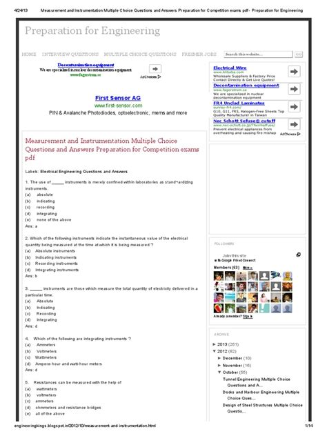 Read Online Diploma Instrumentation Multiple Choice Questions Answers Epub