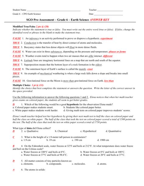 Download assessment pretest introduction to science answer key Doc