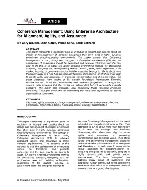 Read Online Coherency Management Architecting the Enterprise for Alignment Kindle Editon