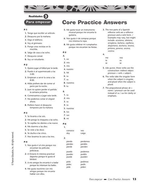 Download Realidades 2 Core Practice Answer Key 6a Doc